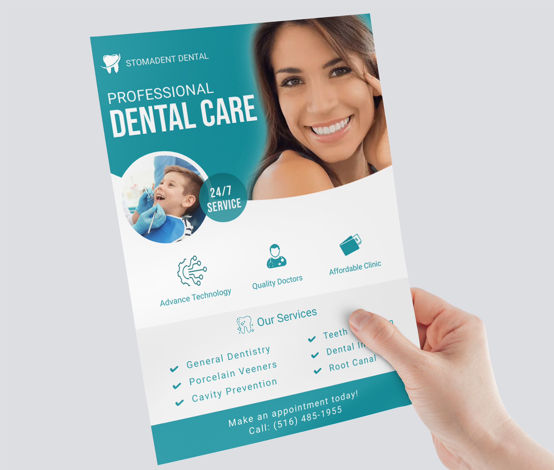 During my time at Stomadent Dental, I was tasked with designing print materials such as brochures, flyers and business cards. This is one of the flyer's I designed for the dental practice.